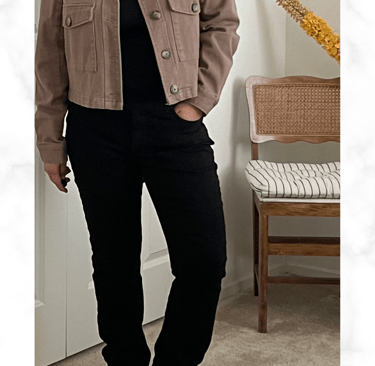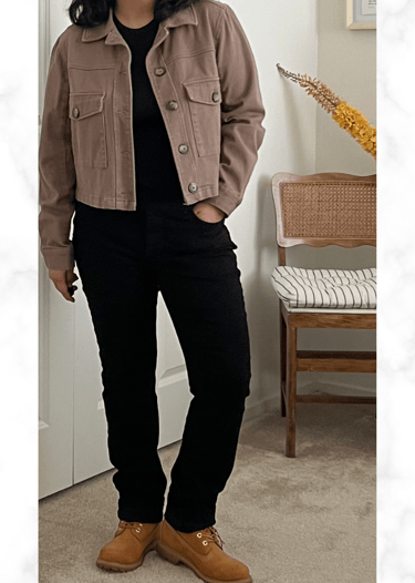 Nothing says autumn like a cozy jacket and boots. For this look, I paired slim black jeans with a cropped brown jacket and the always-cool Doc Martens. It’s the perfect fall jean outfit for women over 50—stylish, comfortable, and season-ready.