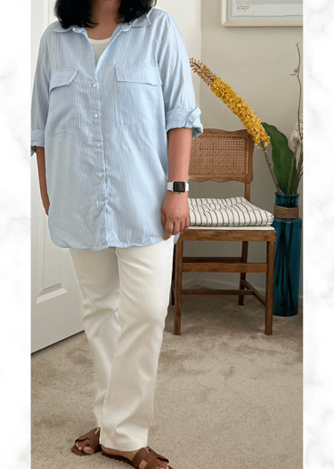 White jeans are a warm-weather staple and instantly brighten any outfit. I love wearing mine with an oversized pinstripe top for a breezy, effortless vibe. Add sandals or espadrilles, and you’ve got a look that’s perfect for summer outings or vacations.