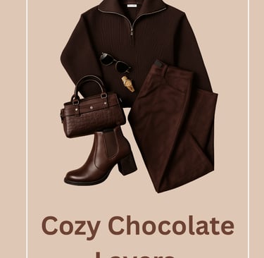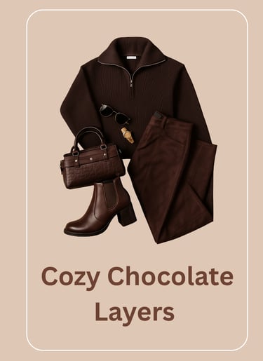 The chocolate brown trend is stealing the spotlight this fall — warm, rich, and effortlessly chic. A brown sweater with suede pants and ankle boots creates that sleek, tonal look everyone’s loving.