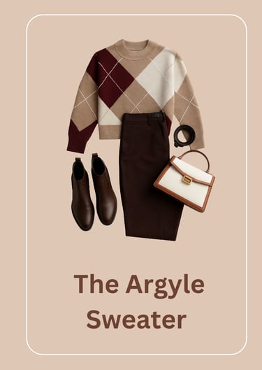 A beige argyle sweater with brown pants feels like fall in a nutshell — cozy, timeless, and a little vintage.