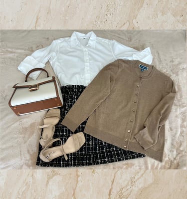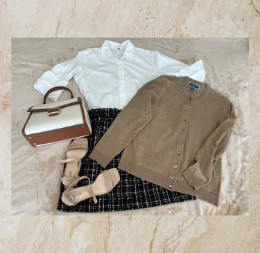 For a meeting or work setting, I tuck my white shirt into a pencil skirt or tailored trousers. Classic sandals and minimal jewelry keep it elegant. When it’s chilly, I layer on a cardigan for a soft, polished finish.