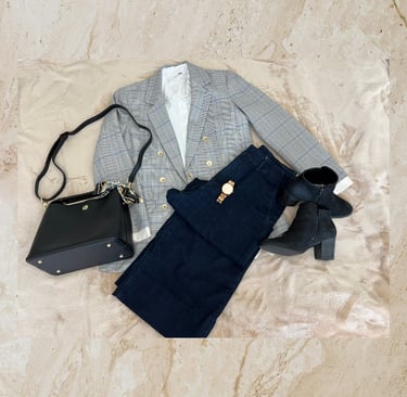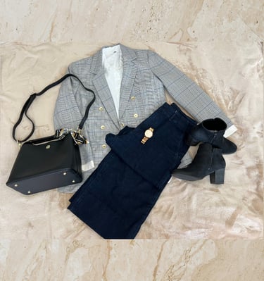 Nothing beats this combination—ever. I pair my white shirt with wide-leg dark jeans (so flattering!) and throw on a blazer for a business casual twist. Black boots, a structured handbag, and a simple watch finish the look perfectly. Easy, classic, done.