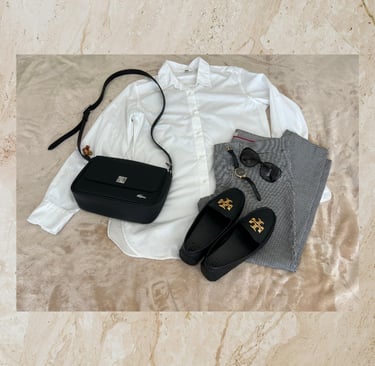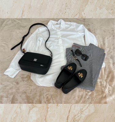 You can’t go wrong here—black and white is timeless. I like to layer a black vest over my white shirt for a modern, chic twist. It’s a quick style trick that makes me look instantly pulled together with almost no effort.